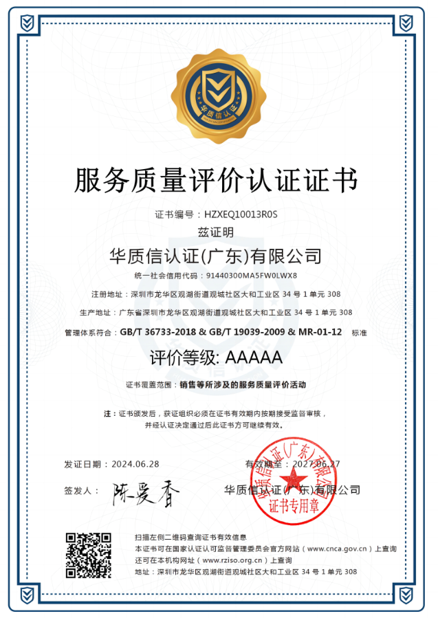 服务质量评价认证