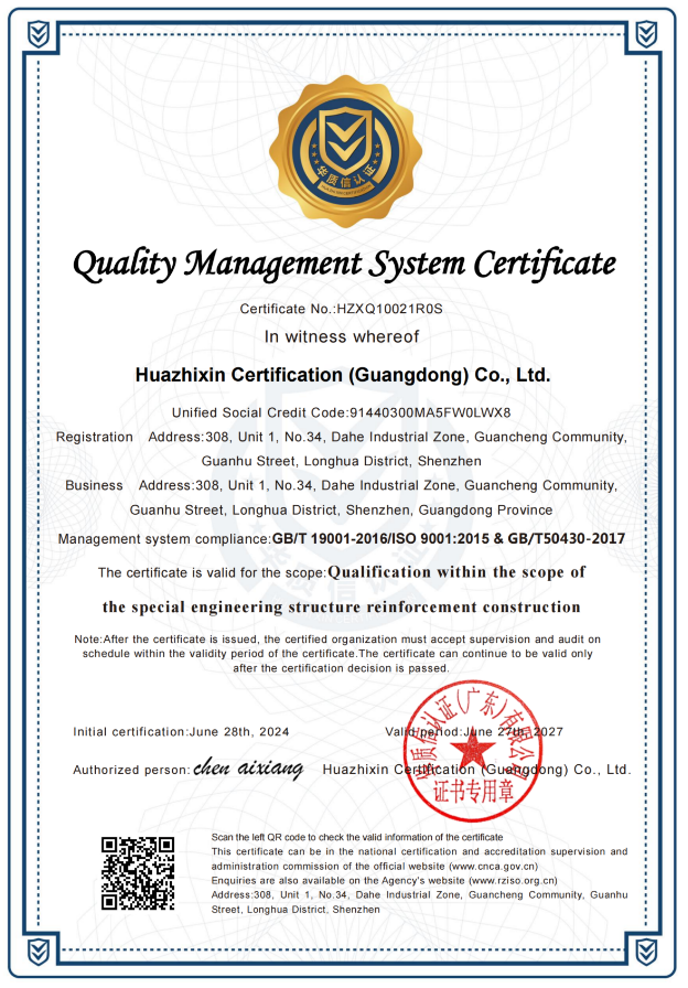 建设施工行业质量管理体系认证证书